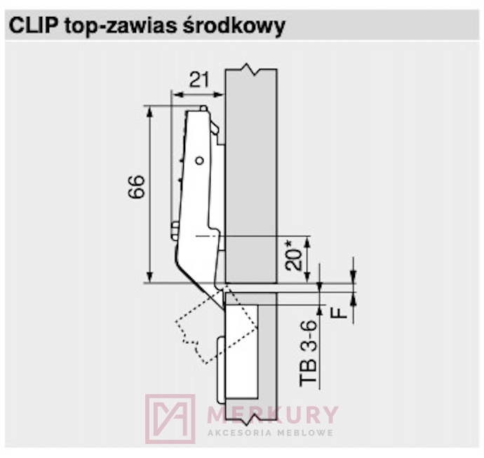 Zawias meblowy środkowy Clip-T BLUM 78Z5500T bez sprężyny