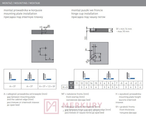 10. Ochrona środowiska: Zużyte lub uszkodzone zawiasy oddawaj do recyklingu zgodnie z lokalnymi przepisami.